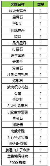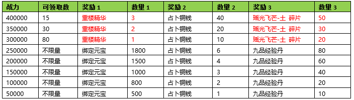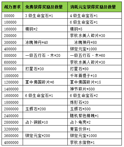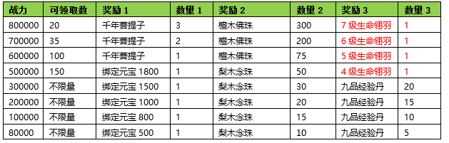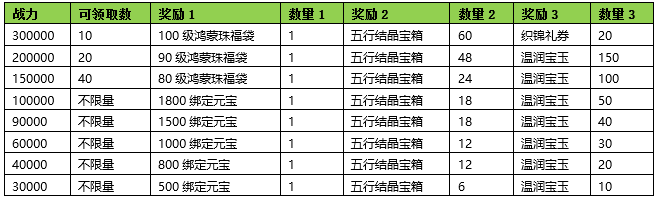 活动期间内玩家拥有的五行珠战力达到要求,可以获得对应的奖励。