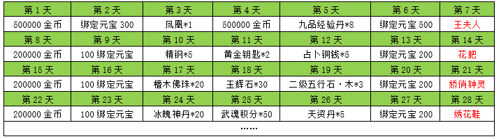最快达成日期 | 星期 | 活动条件 | 奖励名称 | 数量 |