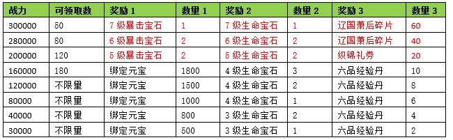 活动期间内玩家拥有的宝石战力达到要求,可以获得对应的奖励。