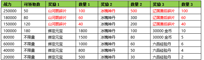 活动期间内玩家拥有的伙伴战力达到要求,可以获得对应的奖励。