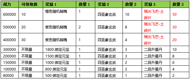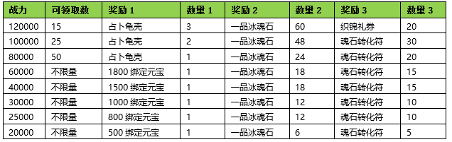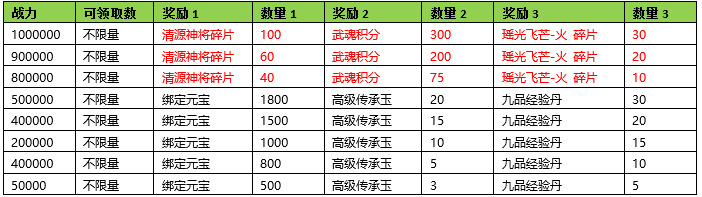 活动期间内玩家拥有的武魂战力达到要求,可以获得对应的奖励。