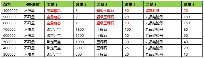 活动期间内玩家拥有的宝鼎战力达到要求,可以获得对应的奖励。