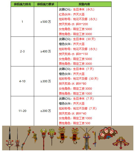 侠侣战力榜-红色齐天大圣+炫彩称号+工资