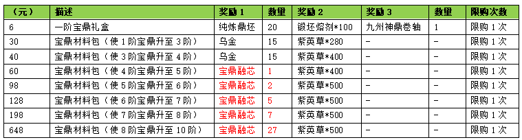 10阶初级宝鼎礼盒:开启后随机获得1个战力在80万-120万间的10阶九州宝鼎。