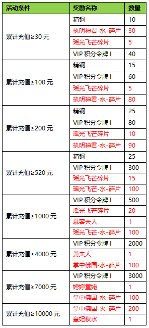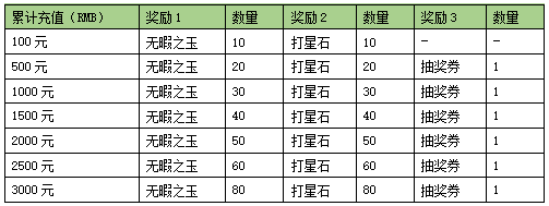 活动规则及奖励:活动期间内达到充值金额送对应档位奖励