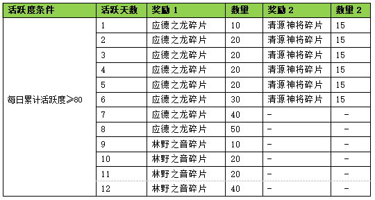 1.活动期间内玩家活跃条件达到指定要求可以领取清源神将碎片。