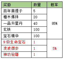 活动期间内玩家拥有的五行珠战力达到要求,可以获得对应的奖励。