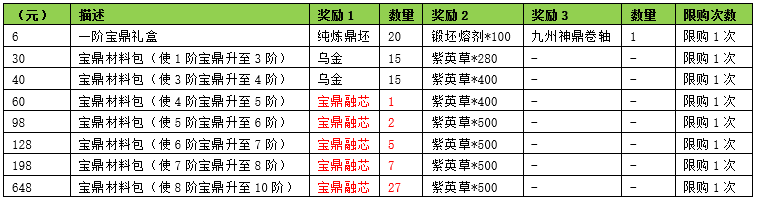 10阶初级宝鼎礼盒:开启后随机获得1个战力在80万-120万间的10阶九州宝鼎。