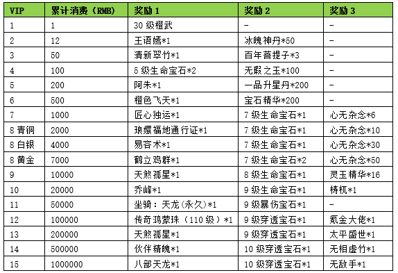 | 等级福利礼包 | 1 | |||