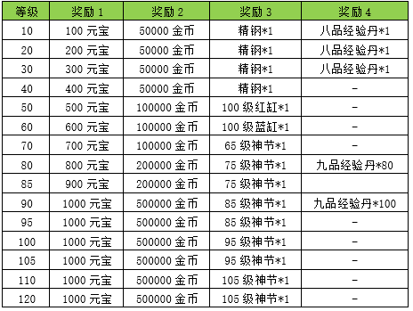 玩家等级满足条件将获得对应档位奖励。