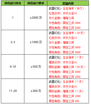 侠侣战力指夫妻双方在活动期间内最后一次下线时的实际战力和。
