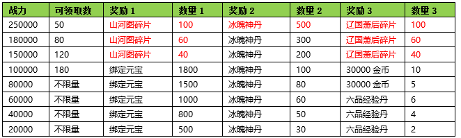 活动期间内玩家拥有的伙伴战力达到要求,可以获得对应的奖励。