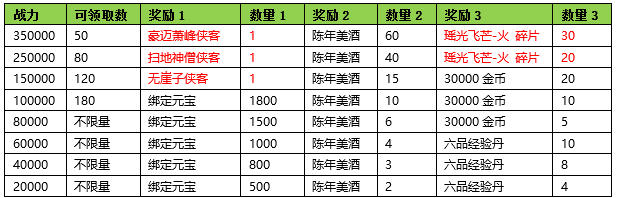 活动期间内玩家拥有的侠客战力达到要求,可以获得对应的奖励。