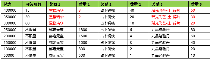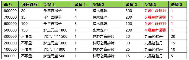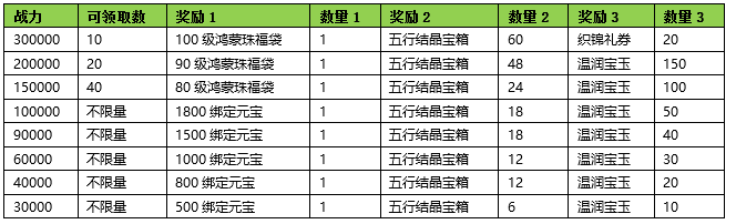活动期间内玩家拥有的五行珠战力达到要求,可以获得对应的奖励。