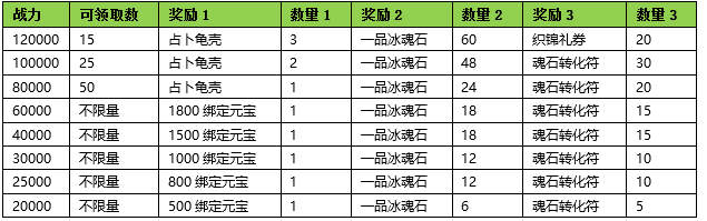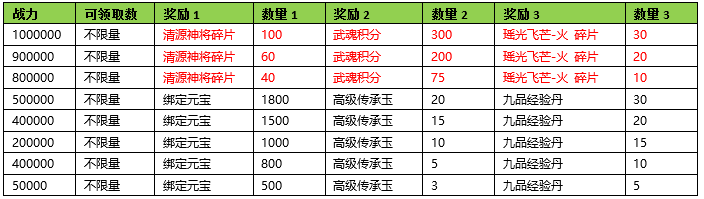 活动期间内玩家拥有的武魂战力达到要求,可以获得对应的奖励。