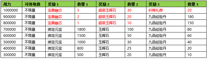 活动期间内玩家拥有的宝鼎战力达到要求,可以获得对应的奖励。