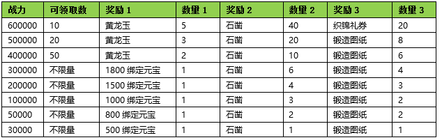 活动期间内玩家拥有的镇器战力达到要求,可以获得对应的奖励。