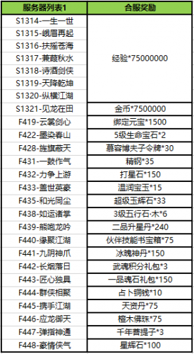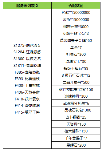 补偿范围:以下区服合服前建立账号的角色可以领取本次合服补偿,本次合服补偿奖励: