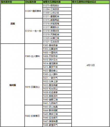 我们计划在2026年4月13日6:00-14:00针对整合互通服停服维护,开服时间根据实际情况提前或顺延,请以实际开服时间为准,请玩家密切关注官方公告。“整合互通”期间所有大跨服停服维护,请诸位英雄女侠相互转告。给您带来的不便,敬请谅解,祝您游戏愉快!