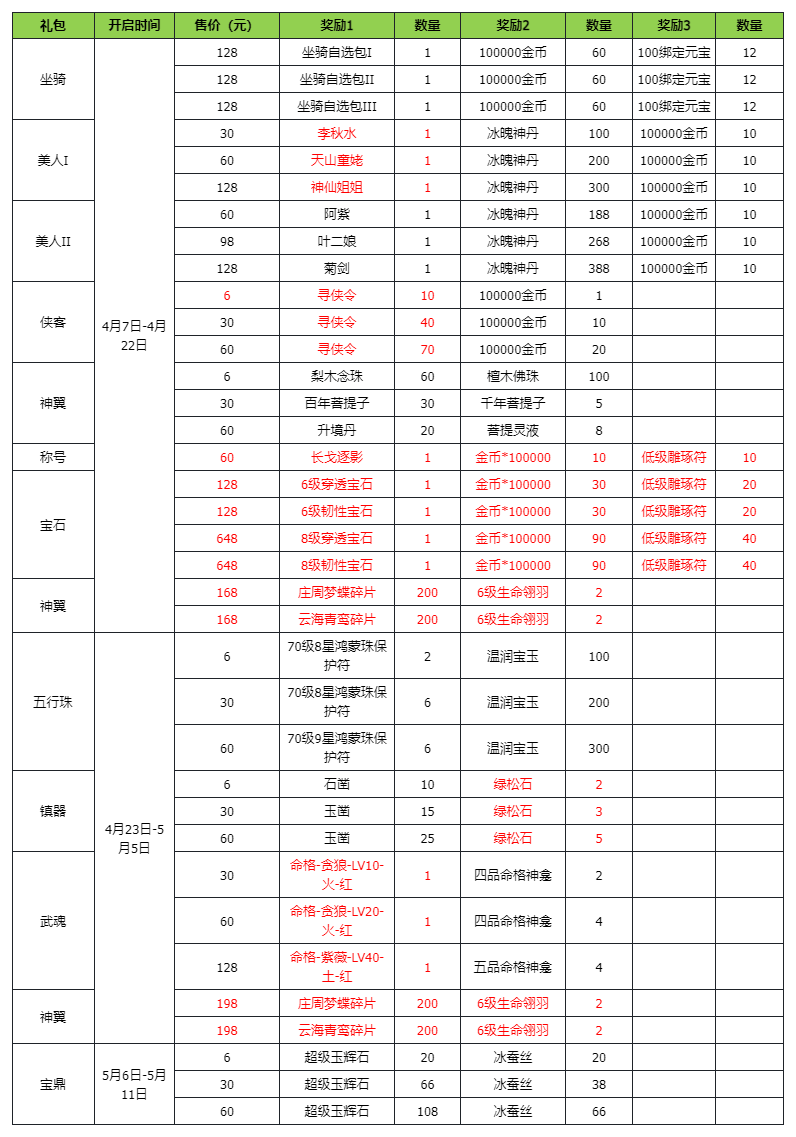 活动时间:4月7日开服后-5月11日(35天)