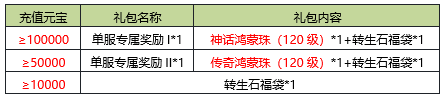 3. 本次充值最高档位120000元宝,所有奖励向上兼容。即充值12000RMB可领取所有奖励;