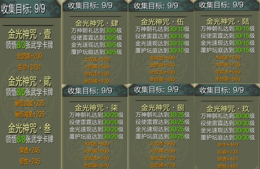 金光神咒武学-收集目标满级属性