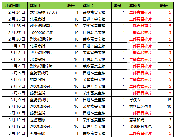 活动时间:2月24日开服后-3月4日23:59(9天)