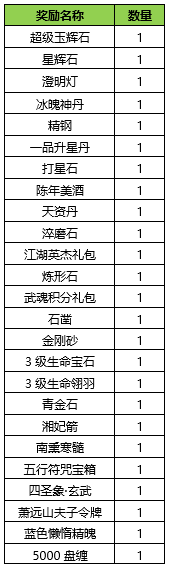 | 3 | 累计登录16天 | 一品升星丹 | 20 |