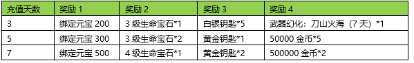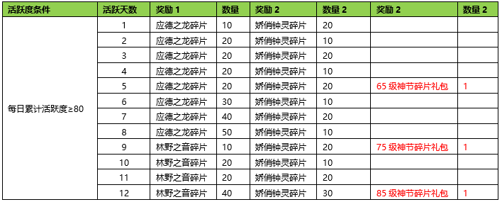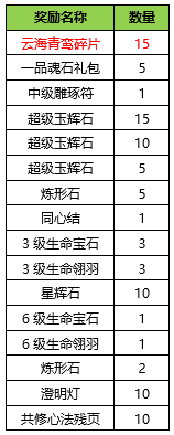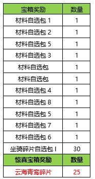 | 星期 | 活动条件 | 奖励名称 | 数量 |