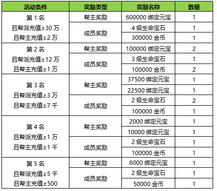 活动期间内若玩家充值金额相等的,将按照时间先后进行排名。