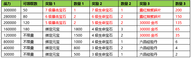 活动期间内玩家拥有的宝石战力达到要求,可以获得对应的奖励。