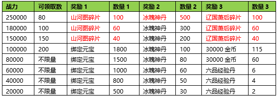 活动期间内玩家拥有的伙伴战力达到要求,可以获得对应的奖励。