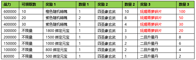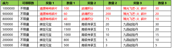 活动期间内玩家拥有的武魂战力达到要求,可以获得对应的奖励。