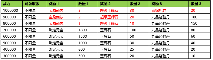 活动期间内玩家拥有的宝鼎战力达到要求,可以获得对应的奖励。