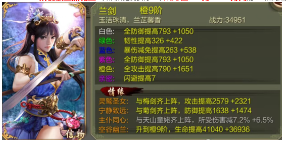 美人兰剑(奖励为基础属性,仅供参考)