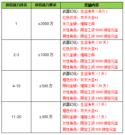 活动期间内玩家拥有的侠客战力达到要求,可以获得对应的奖励。