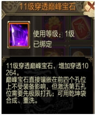穿透自选包I:使用后可在下列道具中选择1种:11级穿透巅峰宝石*1、11级穿透宝石*1、10级穿透翎羽*3。