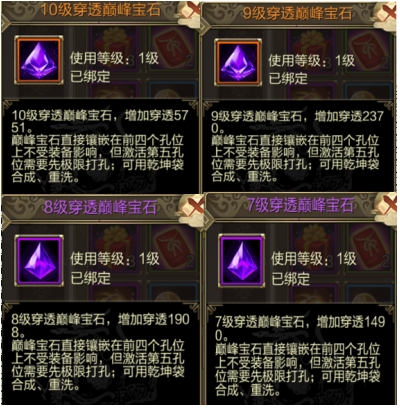 穿透自选包VIII:使用后可在下列道具中选择1种:7级穿透巅峰宝石*2、7级穿透宝石*2、7级穿透翎羽*2。